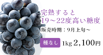 藤稔とピオーネの交配種で、インパクトある黒に近い皮の色が特徴。種なしです。