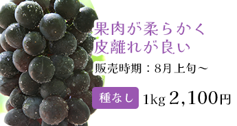 果肉がとてもやわらかく、ジューシーな赤系ぶどう。上品な甘さが特徴です。